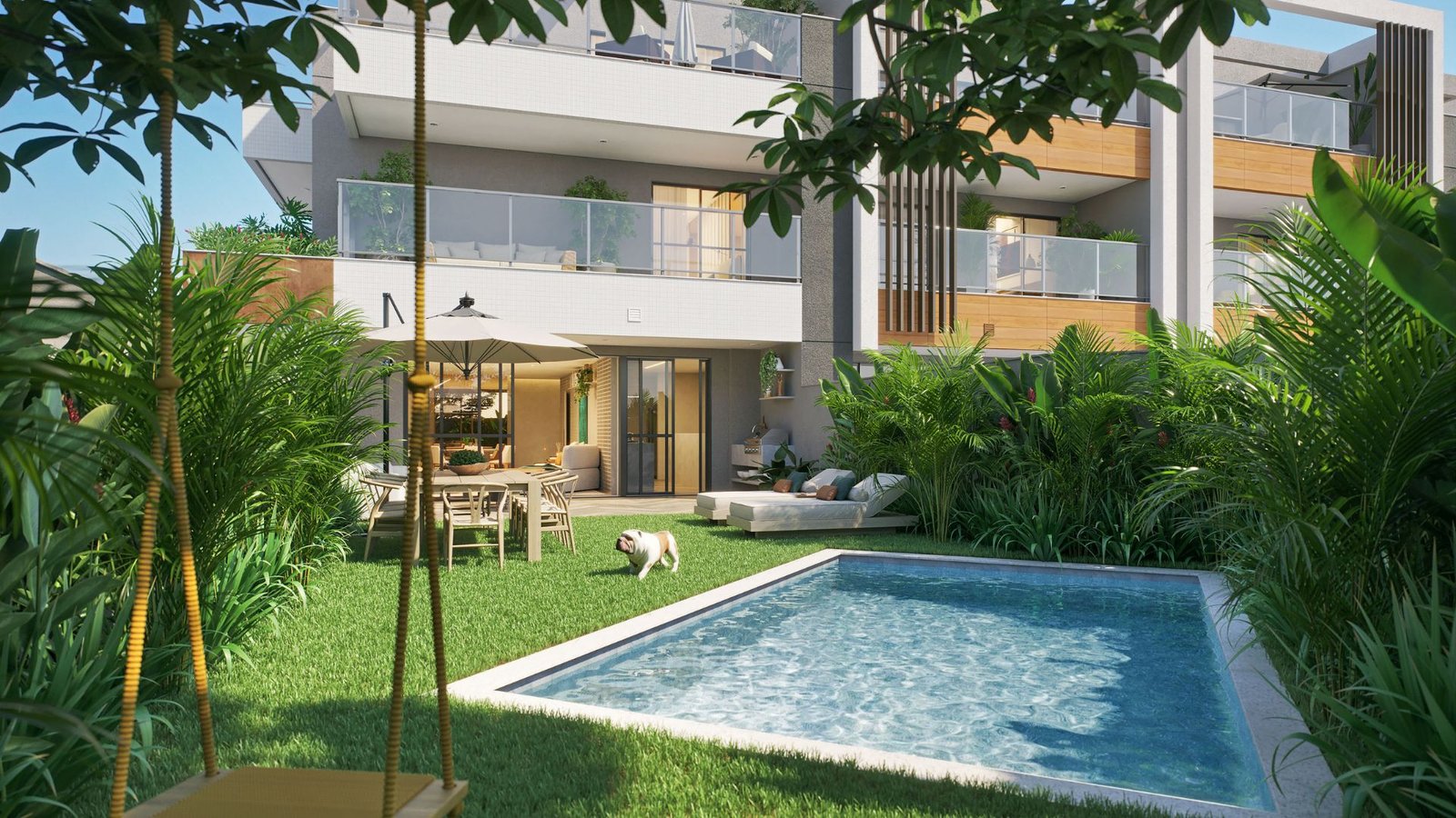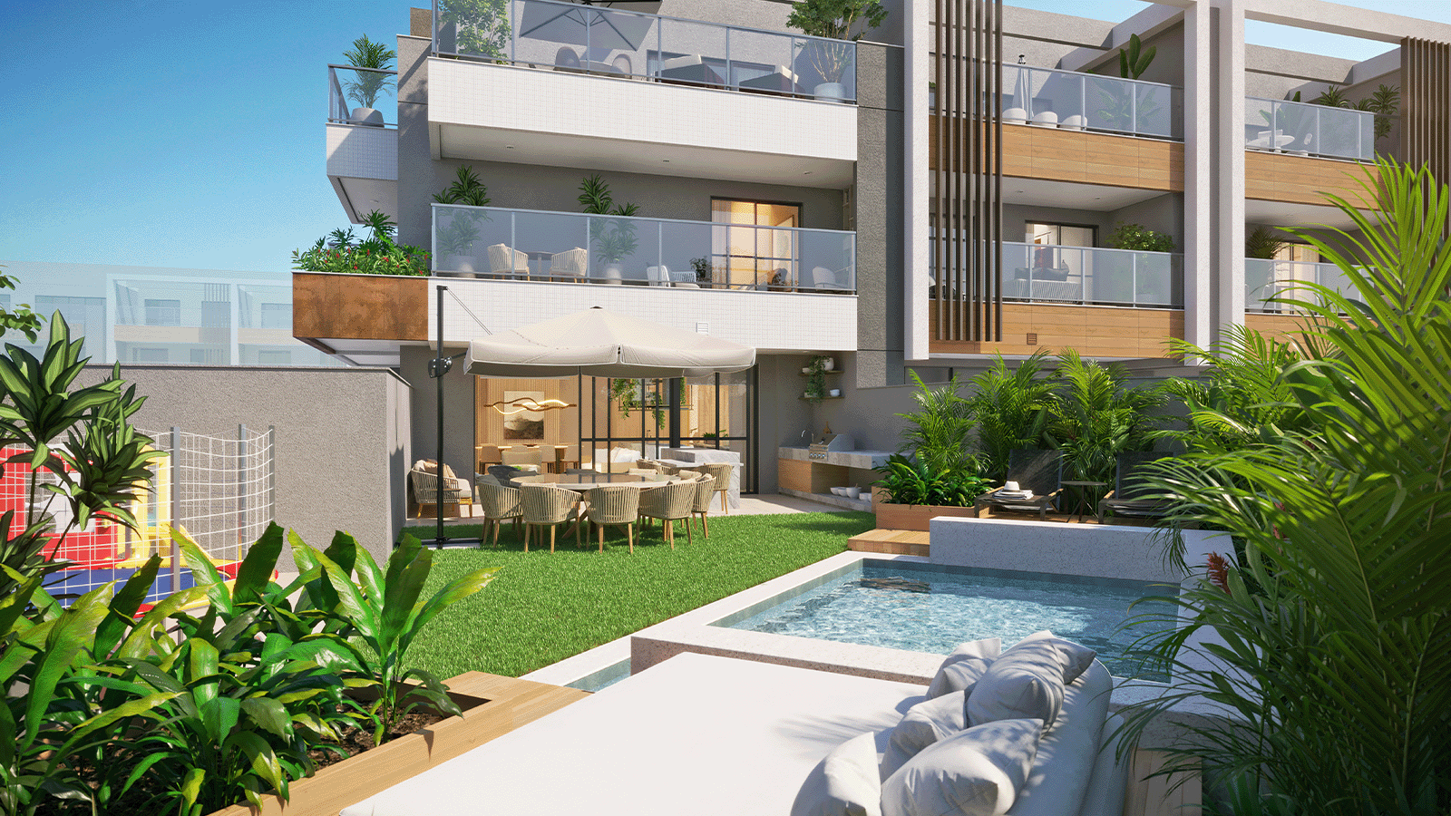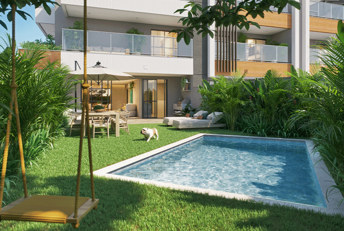 Opções de área externa privativa com garden e lazer
