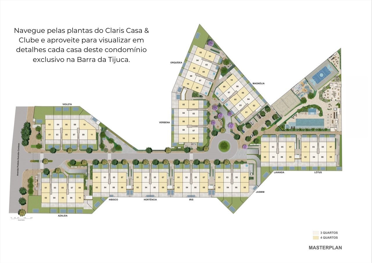 As casas de 4 suítes do Claris Casa & Clube representam um novo patamar de moradia: a liberdade de uma casa, a conveniência de um condomínio clube e a exclusividade de um projeto único na Barra da Tijuca.
